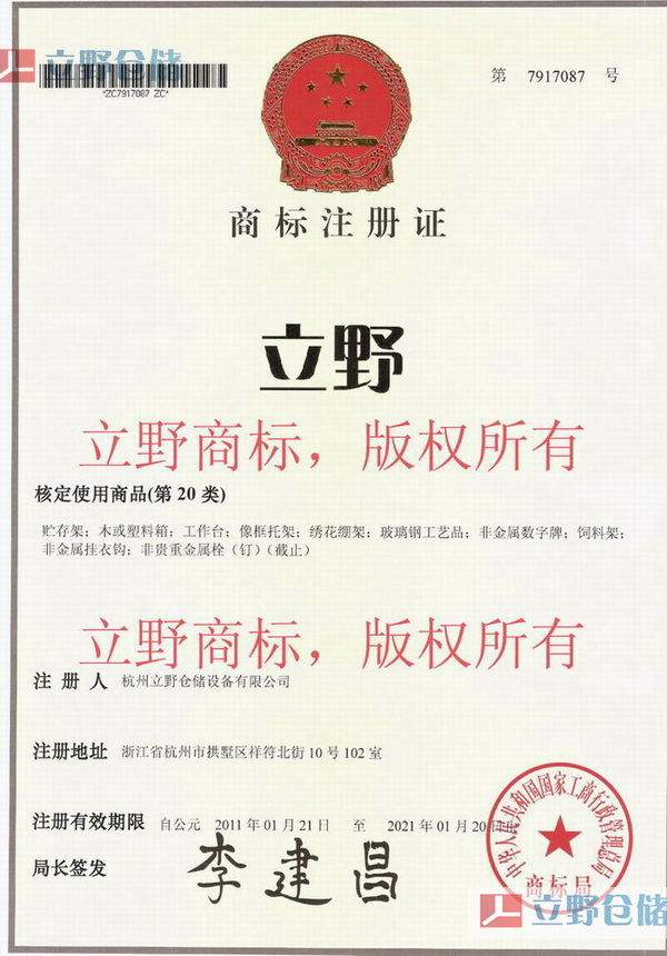 立野®倉儲自成立以來,專注于為企業(yè)用戶提供倉儲貨架的優(yōu)化與設計方案,已經(jīng)為數(shù)千家企業(yè)解決了因外在因素而得不到庫容最大化利用的問題。并為此注冊了立野®商標對外進行宣傳推廣。因此我們特別憎恨這種投機取巧不勞而獲的做法,同時我們也相信,通過虛假宣傳堆徹起來的公司,并不能真正成為高效合格的倉儲貨架供應商。請廣大客戶采購貨架時,請認準立野®品牌,辨別名稱的真?zhèn)危悦庠馐軗p失。也歡迎各位朋友發(fā)現(xiàn)冒充立野®品牌的,可向我司法務部舉報,舉報電話0571-86572457