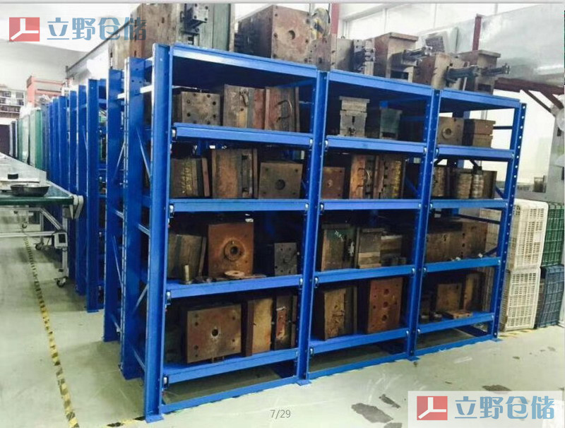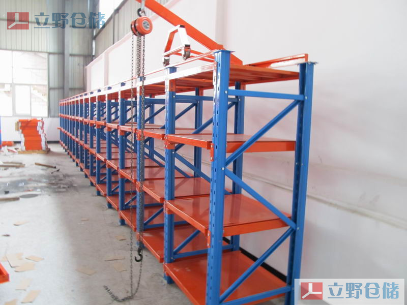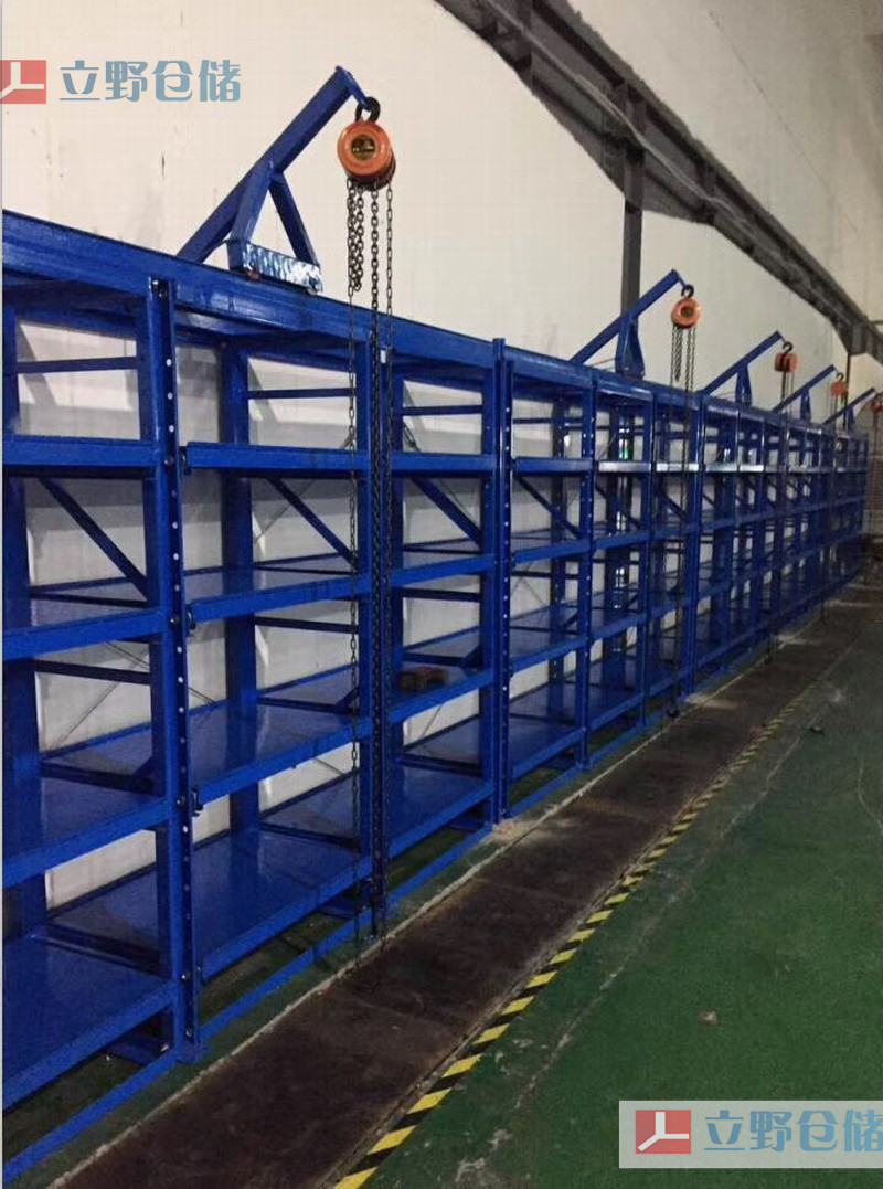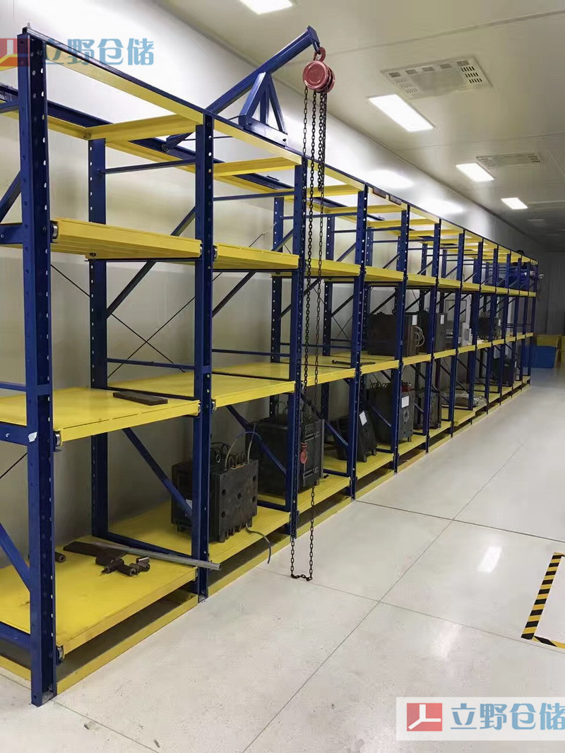 模具貨架又稱模具架或抽屜式貨架,主要存放各種模具物品,根據層載能力要求分為輕型模具貨架和重型模具貨架。貨架頂部可配置移動葫蘆車,以方便模具的起吊。